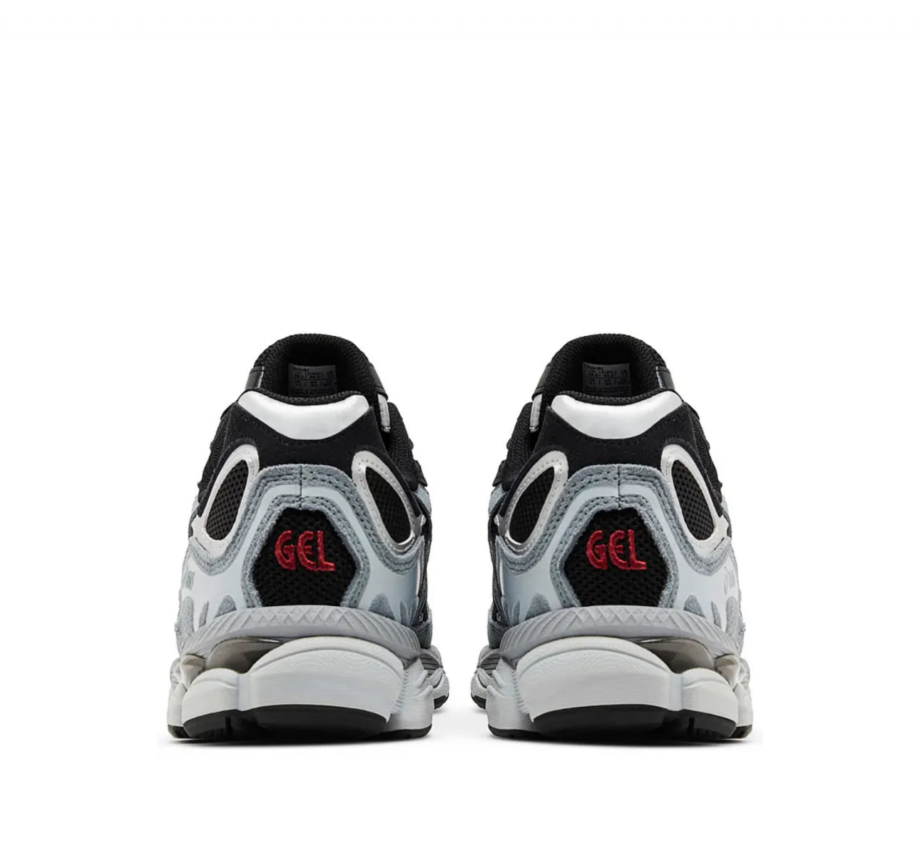 La struttura della tomaia richiama quella della GEL-NIMBUS 3 dei primi anni 2000, alla quale sono stati aggiunti elementi decorativi del modello GEL-MC-PLUS V.